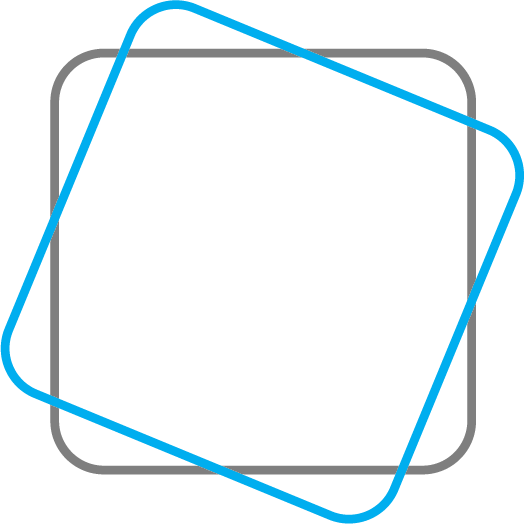 One square is breaking the box of the other and the box emphasized with color is slightly rotated forward to symbolize forward thinking.